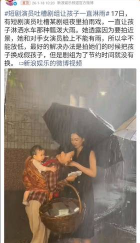 จากสื่อต่างประเทศ ได้รายงานว่า สิงอวิ๋น (邢昀) นักแสดงสาวชาวจีน ออกมาแฉความมืดมนของกองถ่ายละครสั้น ที่ให้ทารกตากฝนเทียมจากรถน้ำกลางดึกเป็นเวลานาน จนกลายเป็นกระแสวิพากษ์วิจารณ์ไปทั่วอินเทอร์เน็ตถึงจรรยาบรรณในอุตสาหกรรมบันเทิง